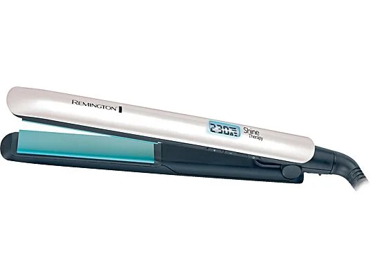 De Remington S8500 Shine Therapy is een hoogwaardige stijltang die glans toevoegt aan het haar tijdens het stylen. Met zijn keramische coating, verrijkt met Marokkaanse arganolie, biedt het zijdezacht haar terwijl het haar wordt beschermd tegen hittebeschadiging. De stijltang heeft een snelle opwarmingstijd, variabele temperatuurinstellingen en een handige automatische uitschakelfunctie voor extra veiligheid. Hoewel het enkele nadelen kan hebben, zoals slijtage van de coating en een hogere prijsklasse, blijft het een populaire keuze voor wie op zoek is naar prachtig gestyled haar met een gezonde glans.
